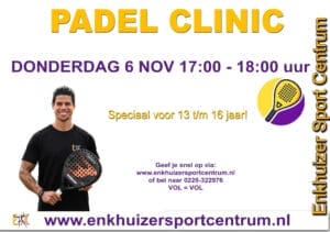Lijkt padellen jou ook leuk, maar heb je geen idee hoe dit moet? Donderdag 6 november is er een padelclinic speciaal voor 13 t/m 16